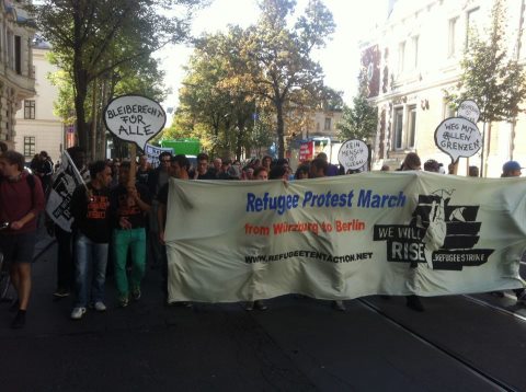 Der Flüchtlingsprotestmarsch ist in Bewegung, um sich von den rassistischen Politikern in Deutschland die Macht zurückzuholen