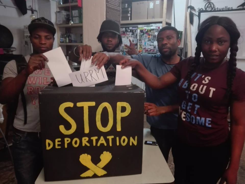 "La nostra scatola nera non solo contiene tutte le informazioni sui rifugiati e i migranti, ma anche il voto contro la deportazione comincia a essere noto" dalla comunità di rifugiati Karlsruhe da URRM - United Refugee Rights Movement.