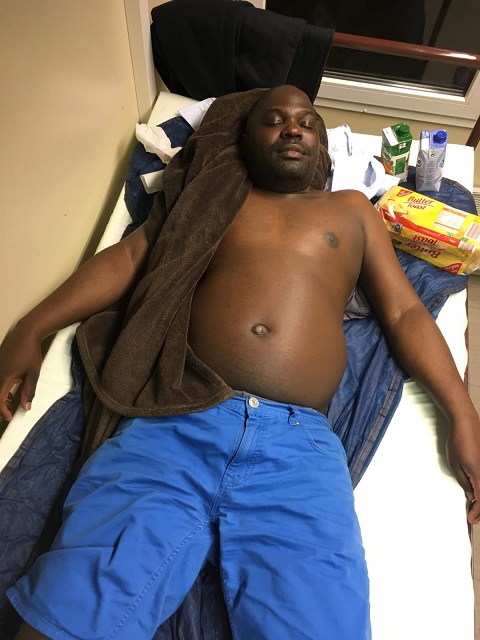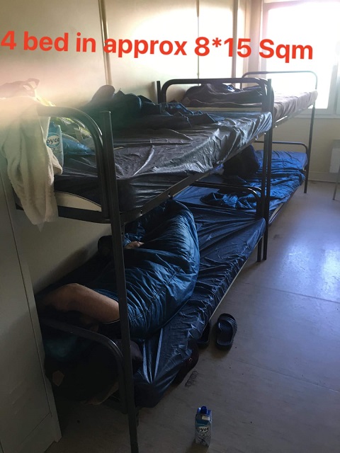 Ein Mann (siehe Foto), der unter einer schweren Lungenkrankheit (ein Arztbericht liegt uns vor) leidet, hustet sehr stark; er erbrach sich über sein Bett und über andere Betten und auf den Boden. Er verlangte nach einem Arzt, aber der Sicherheitsdienst verweigerte das und wir leben alle in diesem Raum. Man kann sich also vorstellen, in welchem Risiko wir leben.