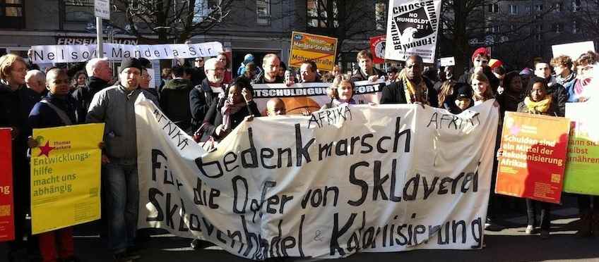 Foto: Aufruf zum 8. Gedenkmarsch zur Erinnerung an die afrikanischen Opfer von Versklavung, Menschenhandel, Kolonialismus und rassistischer Gewalt.