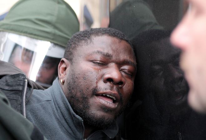 Am 7. Januar 2005 verbrennt Oury Jalloh bei lebendigem Leib, an Händen und Füssen gefesselt, auf einer feuerfesten Matratze, in einer gefliesten Zelle, binnen kürzester Zeit bis zur Unkenntlichkeit … in den Händen der Polizei im Revier Wolfgangstrasse, Dessau-Rosslau, Sachsen-Anhalt … Deutschland, Europa.